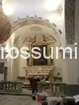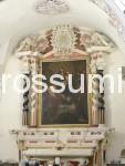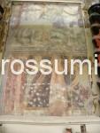 En nous promenant dans le village, nous nous apercevons que l’Eglise Saint André est en cours de restauration. La porte étant ouverte, nous nous glissons discrètement à l’intérieur et voyons un homme et une dame en plein travaux de restauration. Nous leur demandons bien sûr si notre présence ne les dérange pas. Ayant tous deux une formation artistique avancée, les sujet de conversation ne manquent pas. Les travaux devraient encore duré un ou deux mois avant la réouverture de l’église. Lors de ces gros travaux, une découverte majeure y a été faite, derrière un tableau enlevé pour sa restauration, derrière une épaisse couche de plâtre se cachait une fresque du 14è siècle en très bon état et d’après l’histoire que cette fresque évoque, celle-ci est assez rare et importante. Nous avons l’autorisation de la photographier ainsi que les autres travaux.