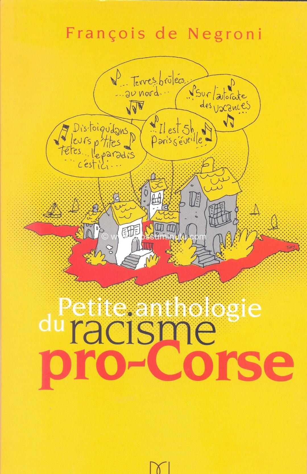 On parle beaucoup aujourd’hui de racisme anti-corse et ses manifestations sont traquées et dénoncées comme attentatoires à la dignité insulaire. il existe pourtant une forme de préjugé autrement obscène et tout aussi insultant, véhiculé par ce qu’il faut bien appeler un racisme pro-corse. Ce discours amoureux notoirement répandu parmi! les vedettes su show-business, des médias, de la culture, du sport, qui ont transformé l’île en réserve people, gonfle la presse locale de propos grossièrement flagorneurs à l’égard du peuple corse, de son authenticité, de ses valeurs, etc.