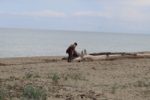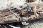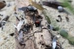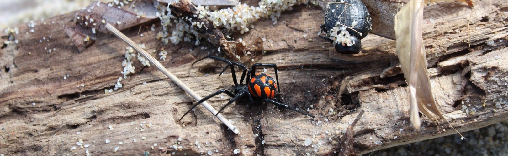 Au hasard de notre progression, parti prendre quelques photos, je vois mon épouse me faire de grands signes en insistant, en ramassant un peu de bois flotté pour ses bricolages, elle tombe nez à nez avec la malmignatta….où veuve noire corse
