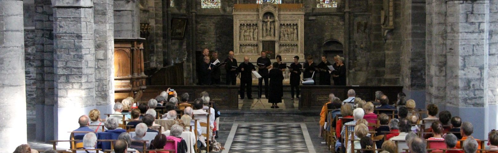 Beaucoup d’évènements ce samedi à Tournai pour les fêtes de la musique. Entre 80 et 100 personnes avaient choisi de venir nous écouter dans cette très belle église du XIIIè siècle. Une église dont la renommée « acoustique » n’est plus à faire. Un régal pour nous de chanter dans ce chœur et devant un public très discipliné et très à l’écoute. Un concert avec la présentation d’une petite vingtaine de chants et d’une durée d’1h1/4. Merci à mon grand ami de nous avoir donner l’occasion de chanter dans cette église.