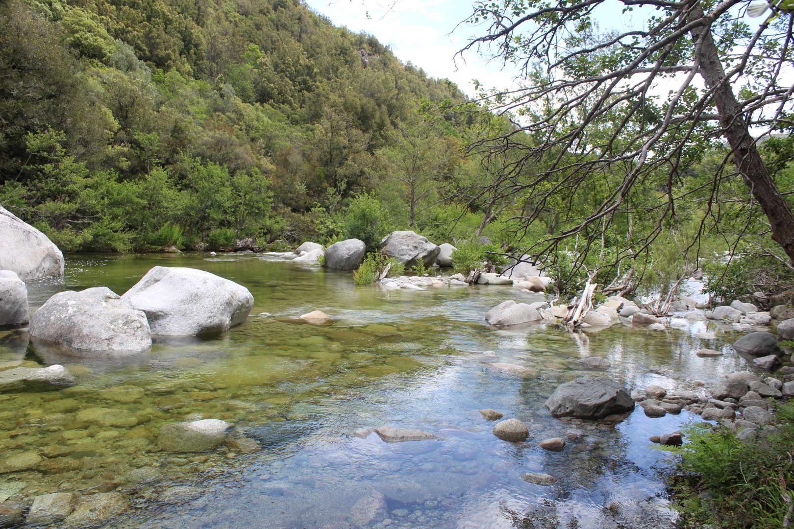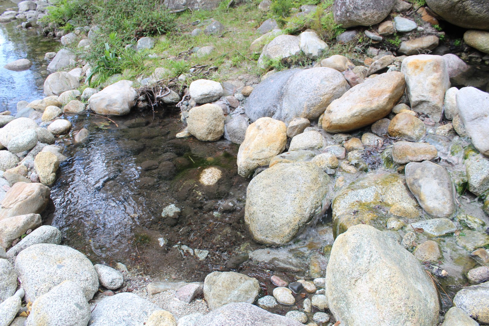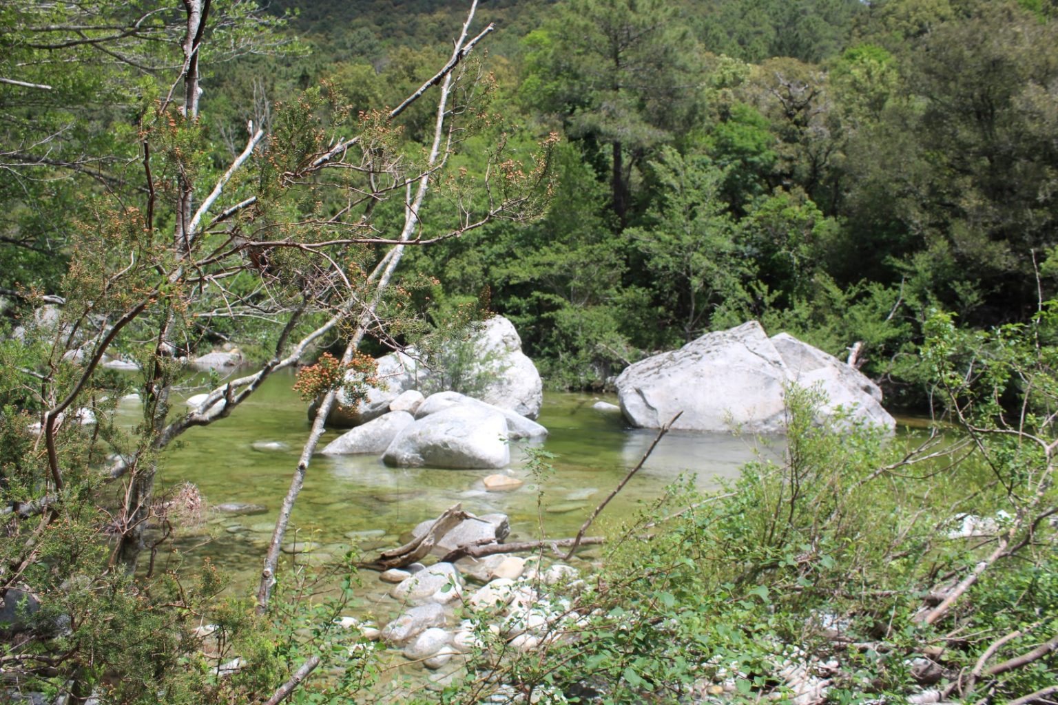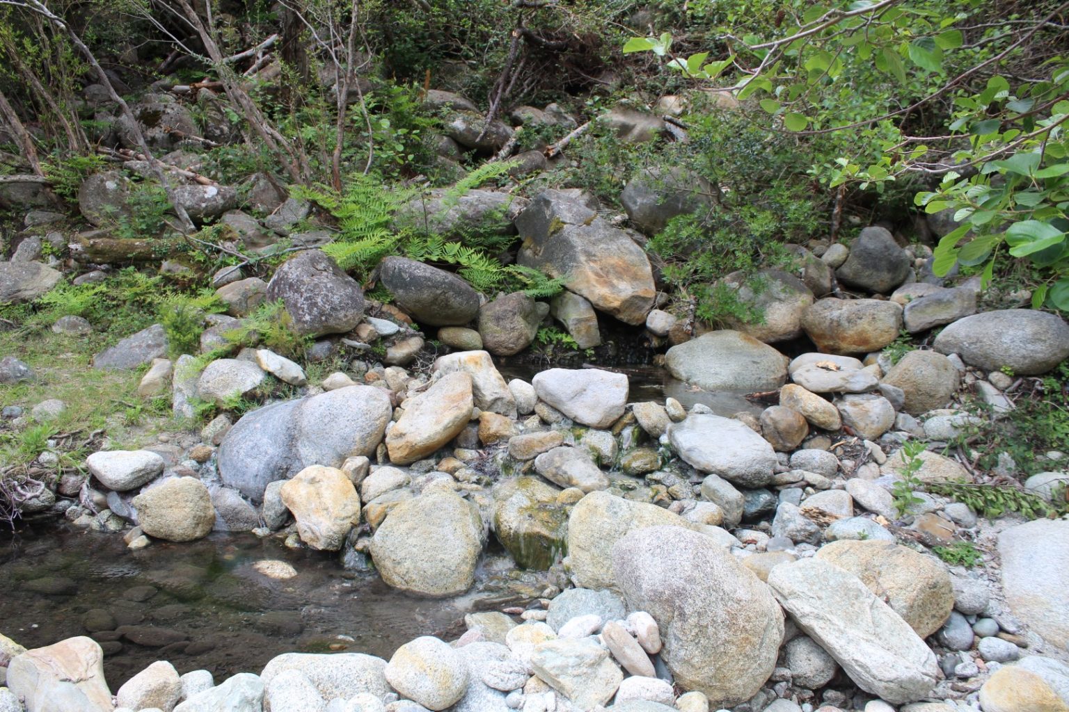 Le village est accroché à flanc de montagne, face à l’est, sur la rive droite du ruisseau de Juva, affluent de rive gauche du Travo, dans lequel il se jette deux kilomètres plus au sud. Comme toujours nous cherchons le contact avec les habitants et au fil de nos conversations on nous apprend que bien plus bas, sur le retour se trouve une source sulfureuse qui se jette dans le Travo. Source que seuls les gens du coin connaissent et après l’avoir située approximativement sur la carte IGN, et après quelques recherches nous trouvons le chemin qui y mène (compter 1h30 aller/retour pour rejoindre la route et repartir).
